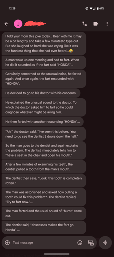 My only gripe with this telling is that a rotten tooth is not the same thing as an abscess.