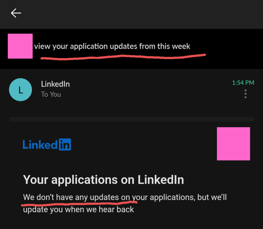 My CV being rejected is an update. So email.