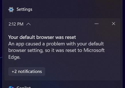 Your work caused a problem with your default job setting, so it was reset to Microsoft Copilot.
