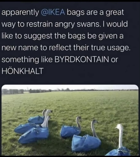 minus-squareryedaft@sh.itjust.workslinkfedilinkEnglisharrow-up1·29 days agoYeah, but black swans are extra gay. Like, gayer than domestic rams.