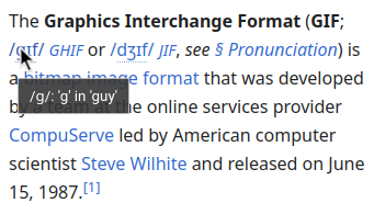 Aatube@lemmy.dbzer0.com to You Should Know@lemmy.worldEnglish · 2 months agoYSK When you hover over a piece of the phonetic notation on (English) Wikipedia, it shows you an example for its pronunciationsh.itjust.worksimagemessage-square62fedilinkarrow-up1407arrow-down113file-text