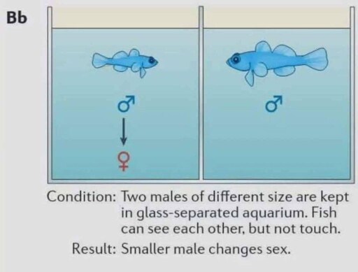 For instance, a group of male fish might only have one female because their species found it best to have one “queen” and many soldiers.