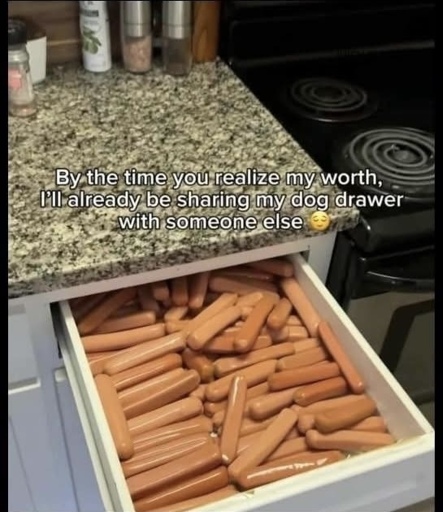 Can’t help but wonder how many individual animals made up those hot dogs, and whether their living conditions were any better than that drawer. Not vegan just an intrusive thought sorry