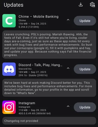 It least Instagram straight up doesn’t give a changelog, rather than letting you read dumb exposition that tells you nothing. (Thats still crap tho)