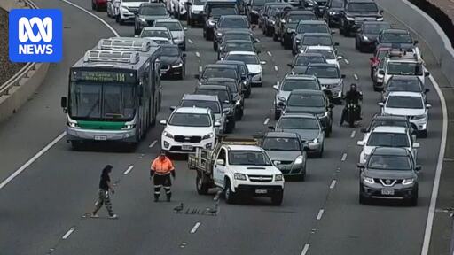 It is the second day in a row ducks have caused peak hour chaos in the same spot on the freeway.