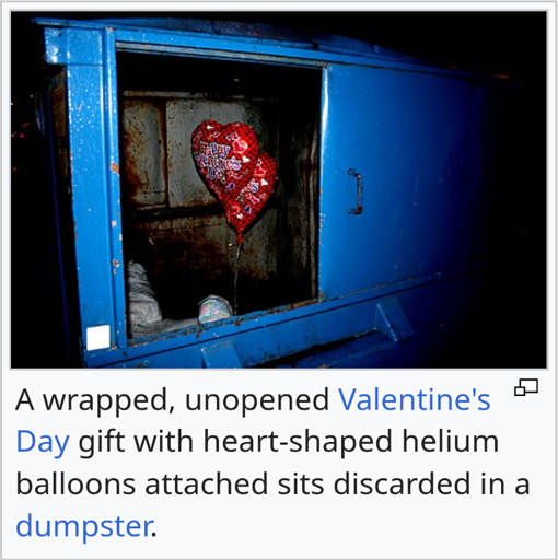 Two armless mannequins kissing in a trashcan, this is not simply “trash art,” no, it is the purest materialization of the contemporary impasse of love under late capitalism.
