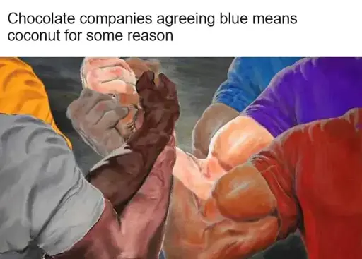 That’s for candy and drinks. Blue is coconut for chocolates specifically. Though it also holds true for granola bars in my experience.