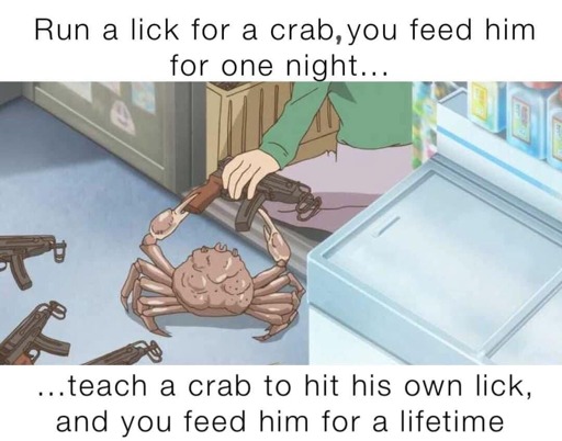 Track_Shovel@slrpnk.net to Lemmy Shitpost@lemmy.worldEnglish · 2 days agoFeed a crab for a lifetimeslrpnk.netimagemessage-square8fedilinkarrow-up1123arrow-down15