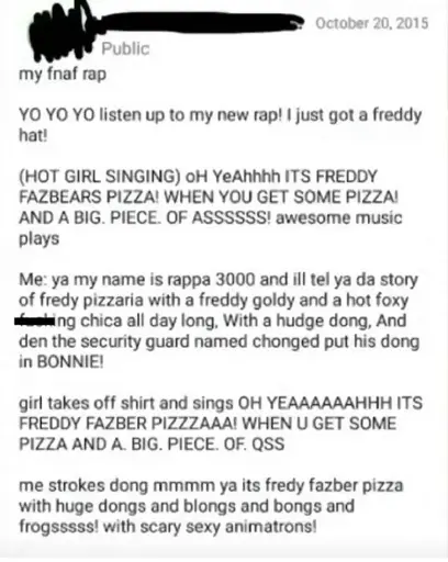 SSUPII@sopuli.xyz to Lemmy Shitpost@lemmy.world · 15 days agofive nights at freddy's rapNSFWsopuli.xyzimagemessage-square8fedilinkarrow-up155arrow-down113