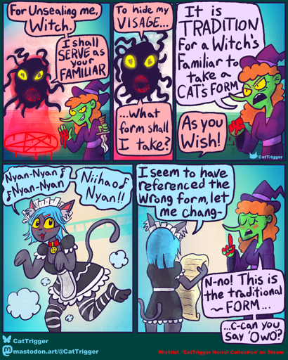 When a WITCH earns their CAT 𝗦𝗲𝗲 𝗺𝗼𝗿𝗲 𝗼𝗳 𝗺𝘆 𝗰𝗼𝗺𝗶𝗰𝘀 & 𝗼𝘁𝗵𝗲𝗿 𝘀𝘁𝘂𝗳𝗳 𝗮𝘁 Bluesky | Mastodon | Instagram 𝗖𝗵𝗲𝗰𝗸 𝗼𝘂𝘁 𝗺𝘆 𝗵𝗼𝗿𝗿𝗼𝗿 𝗴𝗮𝗺𝗲𝘀 𝗼𝗻 𝗦𝘁𝗲𝗮𝗺 CatTrigger Horror Collection | Date Time | Storm the Swan
