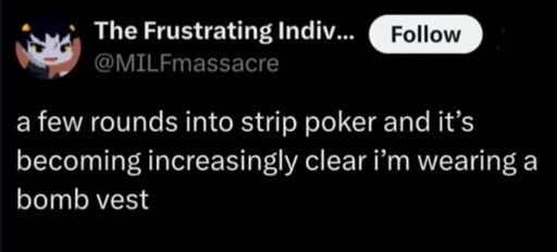 Playing strip poker when all he really wanted to be doing was playing Burnout Revenge on the PS2 while drinking diet Mountain Dew.