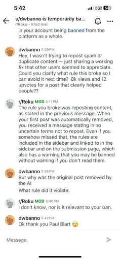 The irony? My Roku fix worked. Thousands saw it before it vanished. So somewhere out there, people are happily watching TV — thanks to a guy Reddit decided to erase.