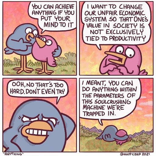 It’s not though because people exploit you for your labour. People like Bezos aren’t multibillionares because they work 10000x harder than a minimum wage worker, they get that wealth by exploiting others. And people like him don’t take the first few million and retire, they hoard all that wealth because people who are willing to exploit people to thay degree and make people piss in bottles aren’t going to be people who give a shit about helping other people.