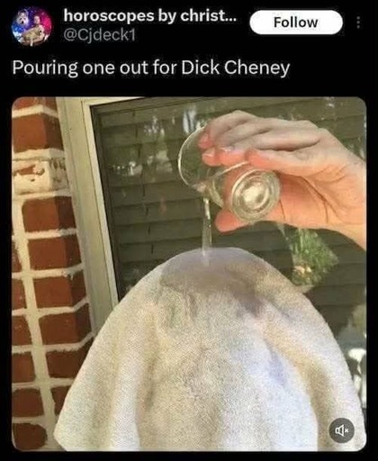 minus-squareWren@lemmy.todaylinkfedilinkEnglisharrow-up66·3 days agoThis is my favorite dick cheney deathpost so far.