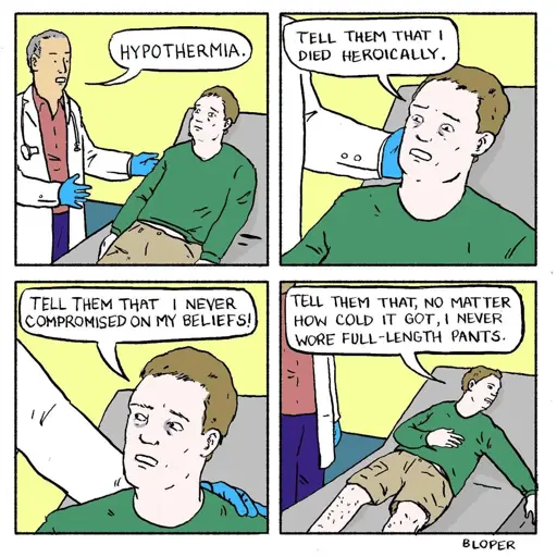 Personally I was always confused by it. I’m a white guy who loves long clothes and rock jeans whenever I can. My dad would (still does sometimes) wear shorts when its sub 50°F. I would ask why and he said he was from Michigan so I wrote it off.