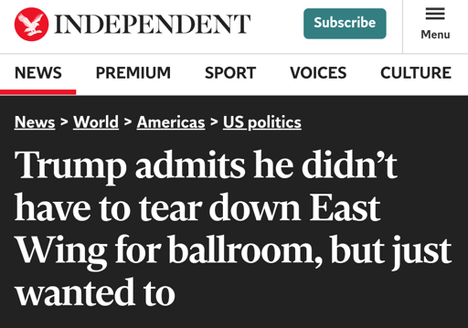 Because it is not so much a ball room as it is a throne room. He wants a giant hall where he can preside at a throne in the end, where people who wants to see him has to walk through the entire thing feeling humbled, just like his dictator pals does it.