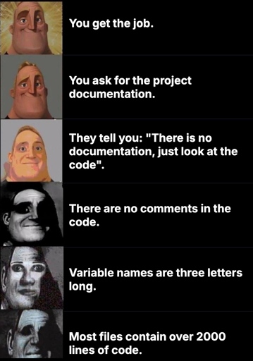 arrow-up11.11Karrow-down1imageThe Six Stages of Code Griefsuppo.ficm0002@suppo.fi to Programmer Humor@programming.dev · 5 days agomessage-square142fedilink