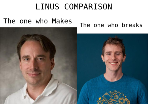 Erik L. Midtsveen 🏴🌈@lemmy.wtf to linuxmemes@lemmy.worldEnglish · 8 days agoLinus Comparisonlemmy.wtfimagemessage-square147fedilinkarrow-up1821arrow-down149