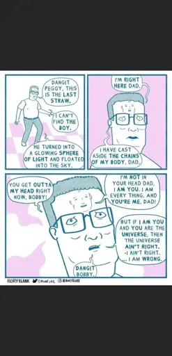 minus-squareLost_My_Mind@lemmy.worldlinkfedilinkarrow-up2·3 days agoNo no no. Bobby is in his 20s and runs a resteraunt. And Hank…spent time in North Korea. For some reason…