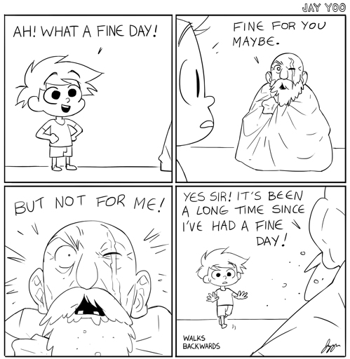 I a little bit missed being befuddled by these well drawn but punchless comics. It’s like a comedic situation, but it never resolves and just settles back into being a situation.