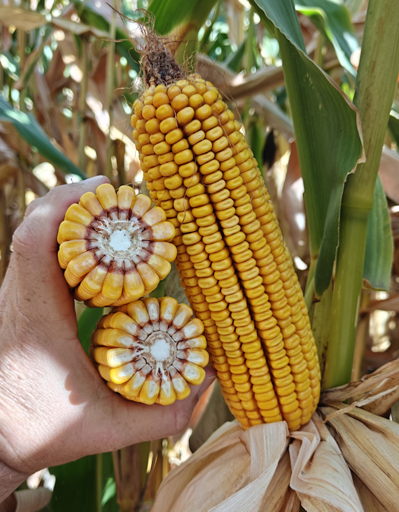 Dang ol’ man, talkin’ bout that corn, that ol’ 350, yeah man, bu/acre, I tell you what. That 113 day, whoo, dang ol’ sizzler in that sand, you know, like… hot. But man, look at them ears, dang near identical, man, talkin’ bout same, same. And them kernels, man, big and dense, just… just packed, you know? Beauty, man, dang ol’ beauty.