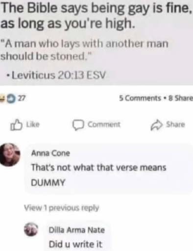 But also just plain old have some common sense that the people of the ancient world didn’t have the same insight we do into human attraction and sexuality, and we can grow and evolve and know better. Also, even if you don’t agree with people being queer, you also have the ability to shut your mouth about it and keep it to yourself, and be the loving Christian you profess to be no matter what your personal beliefs are, and you have no right to tell people who to love, period.