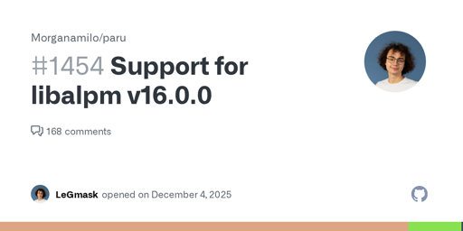 Affected Version paru 2.1.0 and older Description Pacman v7.1.0 and libalpm v16.0.0 got released in arch-testing as of today. The new version of libalpm break paru (as intended), and as of now paru...