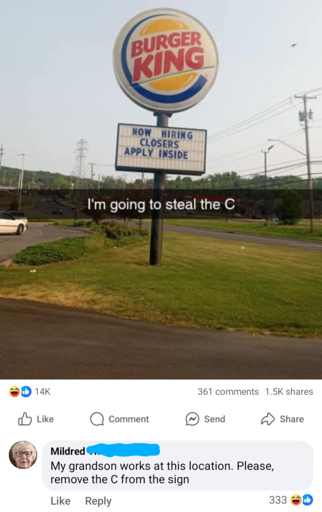 She wants her grandson to keep the job. If only losers apply, they won’t fire him