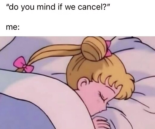 the other side cancelling an appointment / get-together / event when you really don’t wanna go there