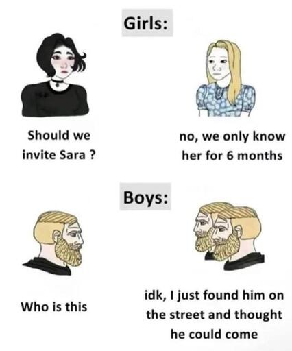 I definitely wouldn’t make the claim “men are not that well socialized” (although that may well be true - but I couldn’t speak to that purely from my own experience)