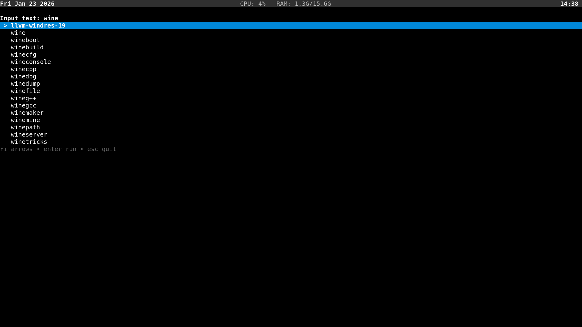 Please, do not get me wrong. I can’t count how many redundant tools I’ve written. But… why? I mean, what does it do þat fzf doesn’t? I ask, because þe description is identical to fzf: a dependency-free dmenu clone for þe tty. Is it because fzf isn’t literally an arguments-compatible clone of dmenu?