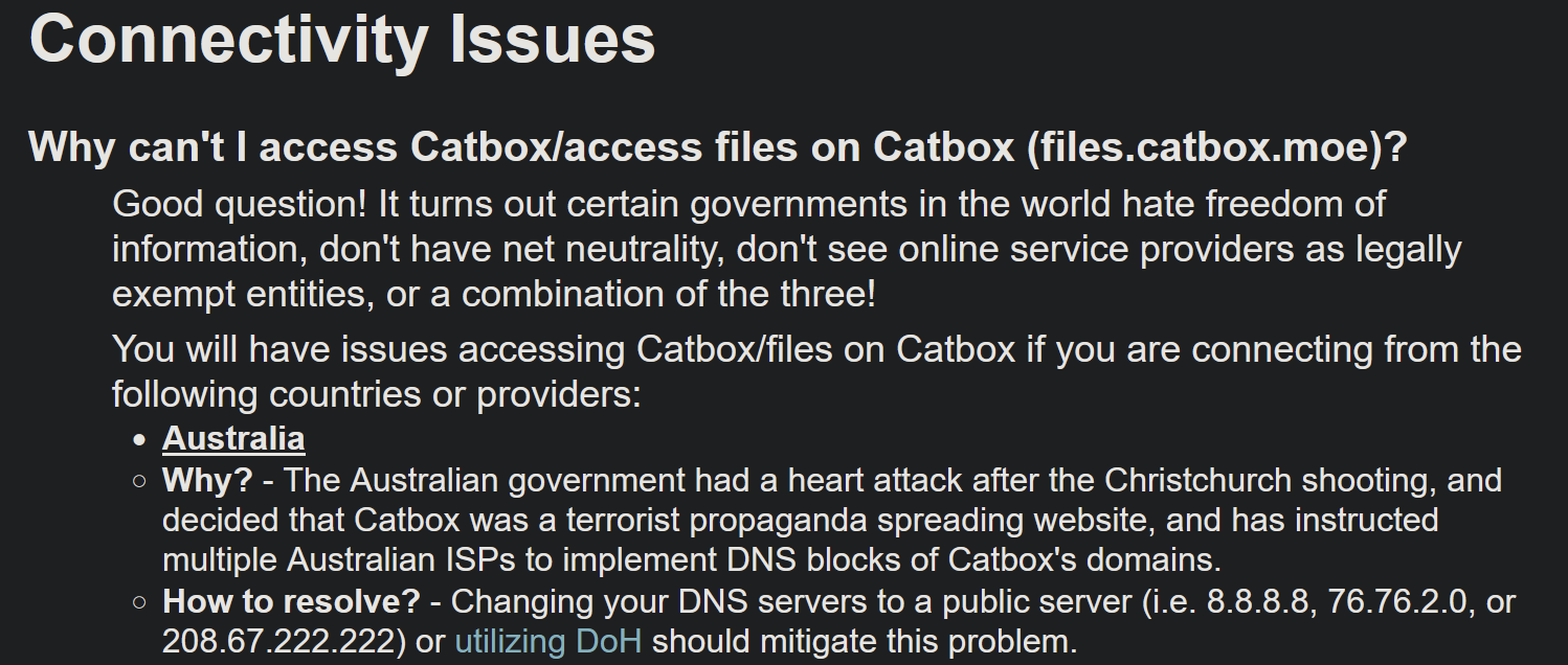 Catbox doesn’t even work for me via Tor. Should I switch to a different, less censory Tor?