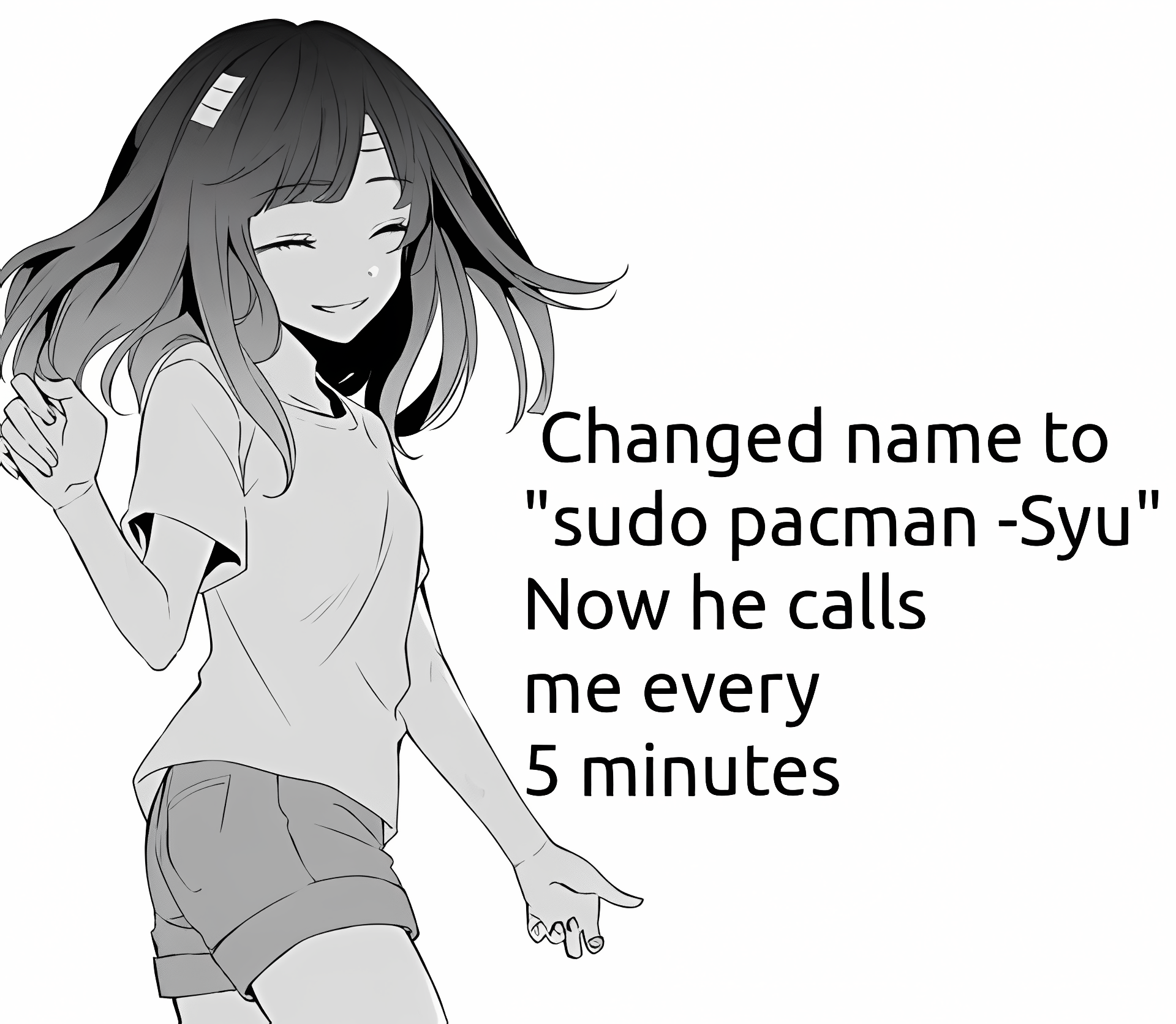 Waffelson@lemmy.world to linuxmemes@lemmy.world · 3 days agoHow often do you update your system?imagemessage-square85linkfedilinkarrow-up1613arrow-down111