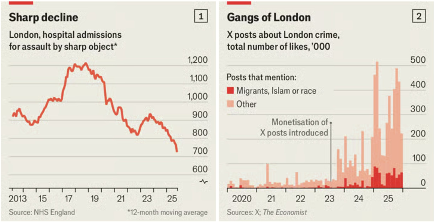 To be fair, as far as I can tell the stats here are a bit misleading. Hospital visits from kinfe crime are down, but general knife crime was at its highest in 2025. I don’t know what the specifics are of that though.