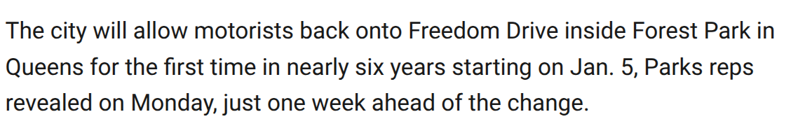 So local families started demonstrating next to the park. They want the new mayor - Zohran Mamdani - to ban cars from Forest park.