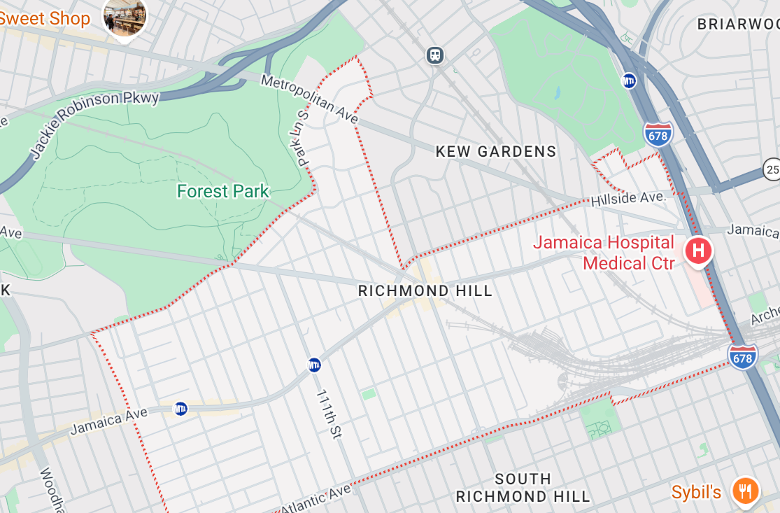 In this borough, there is a park called Forest Park next to a neighborhood called Richmond Hill