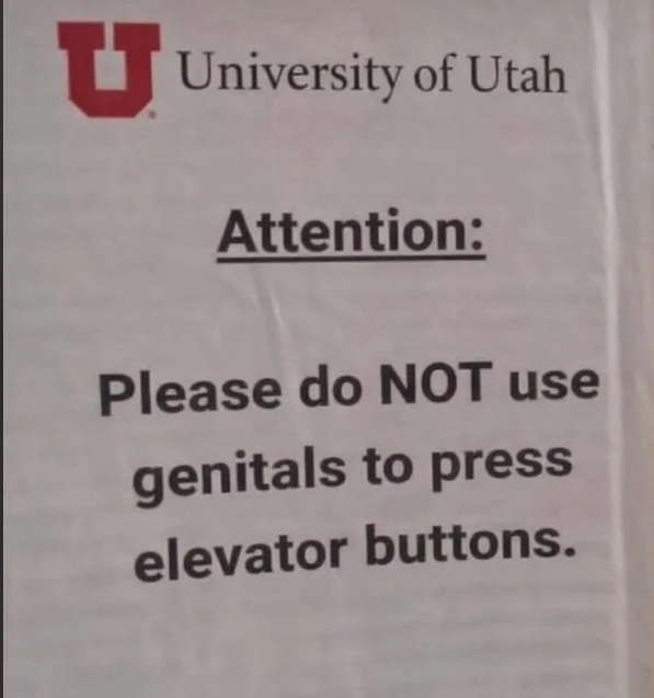arrow-up1218arrow-down1imageYou're feeling depressed. You feel like a loser. Then you get in an elevator and see this sign. Now you know there are others way more mentally crippled than youMickey7@lemmy.world to Lemmy Shitpost@lemmy.world · 10 days agomessage-square21linkfedilink