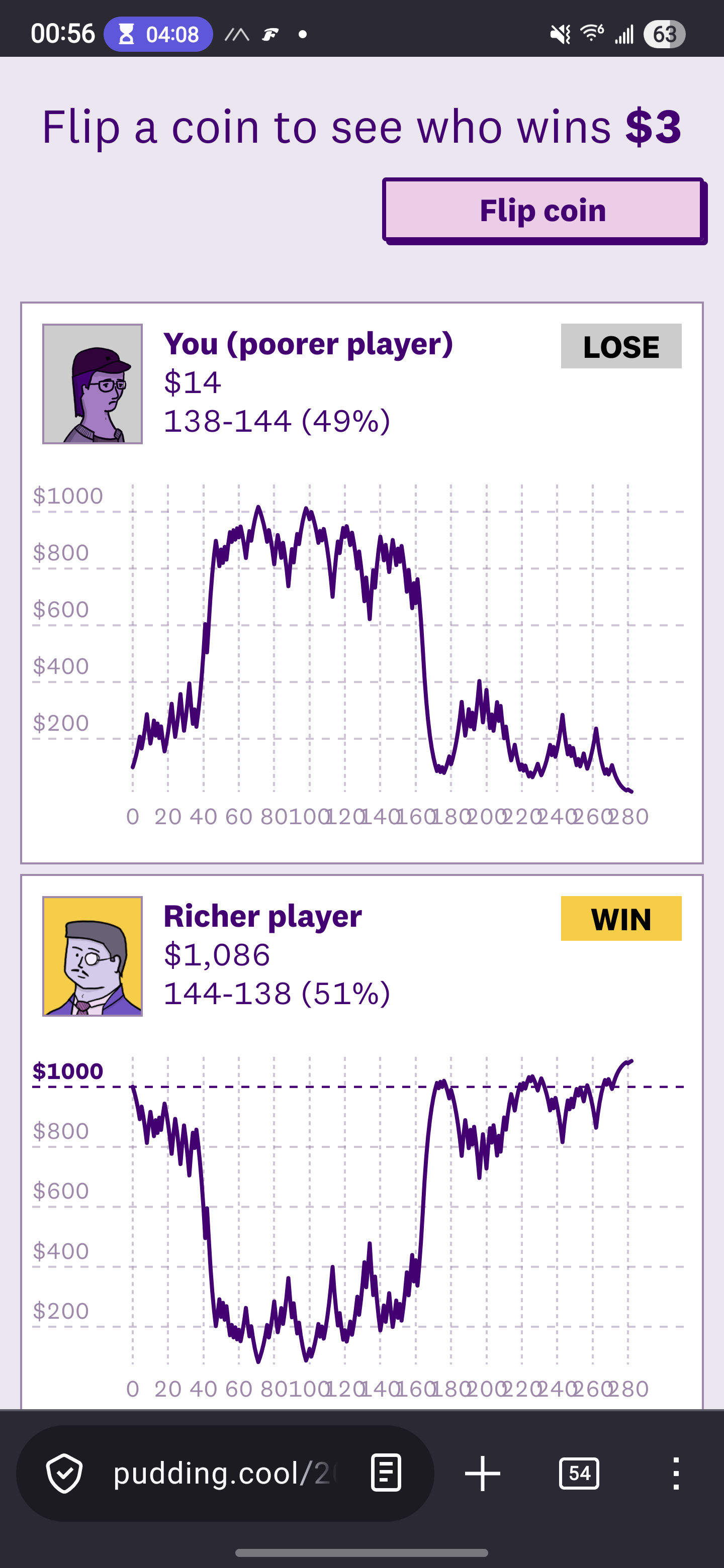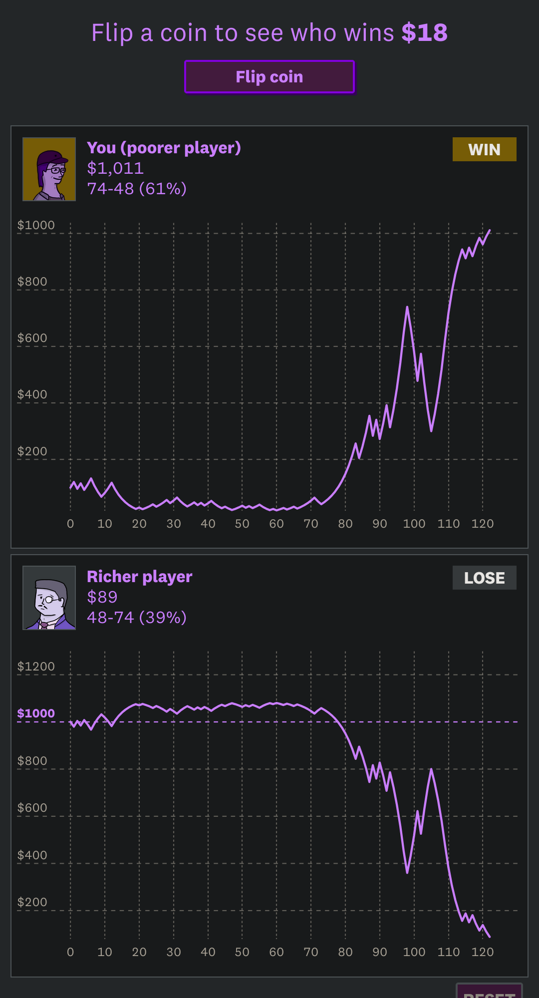Winning 60% of the rounds, and you still haven’t more money than the player who started with more. Is that not proof of the concept?