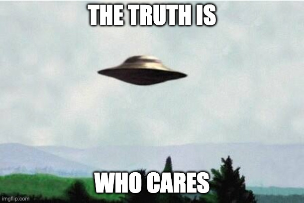 If you told me when I was a kid that the president of the US was going to drop info on aliens and no one would care … I would have said you were insane. Really, I dont care … lets see those Epstein files and get some arrests.