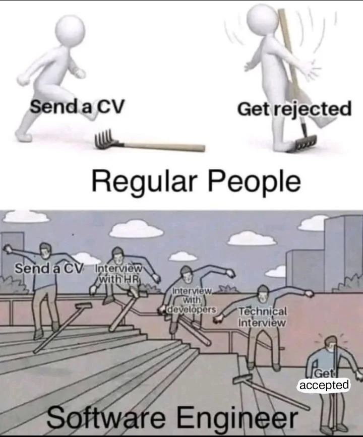 I guess OP never applied for a job outside of software engineering? Other people have their own chain of pointless assessment centers and interviews with everyone to get that sweet rejection at the end.