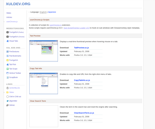 cm0002@ttrpg.network to Firefox@fedia.io · 3 months agoFound this very old site for finding userChrome.js (in-browser) scriptsplus-squarelemmy.mlimagemessage-square0linkfedilinkarrow-up19arrow-down10