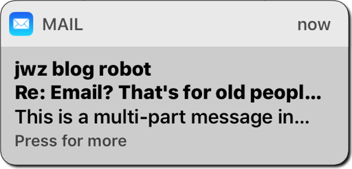 FWIW, just to avoid Dunning-Kruger and because I think you are mistaken here: jwz